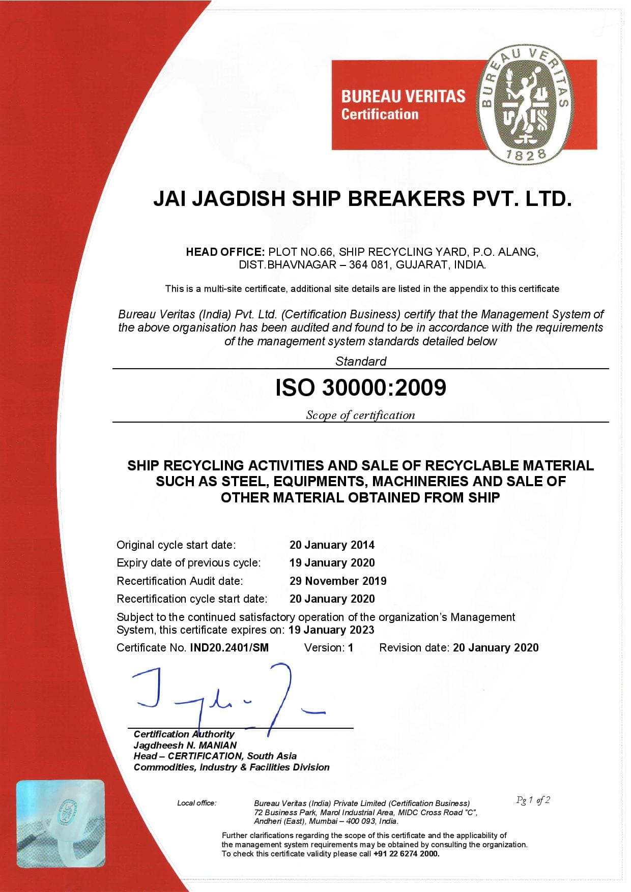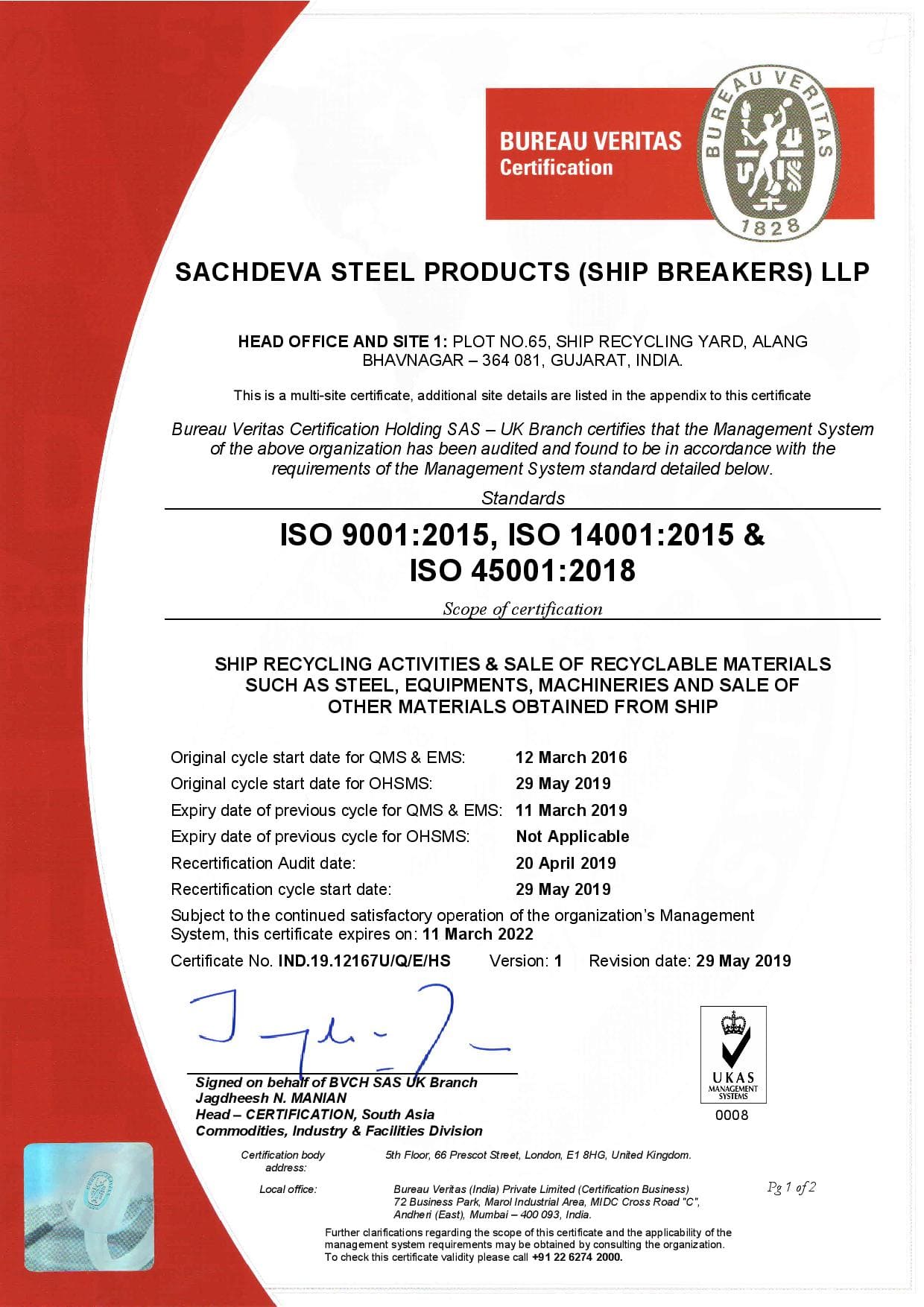 ISO 30000:2009, ISO 9001:2015, 14001:2015 & 45001:2018 Certified Companies